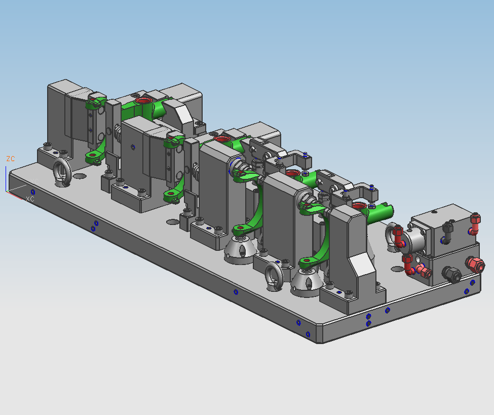 夹具描述:夹具采用叉脚定角向,轴面夹紧方式钻镗内孔及其一叉脚;后序采用前序两孔定位、叉角定角向、轴面夹紧加工另一叉角孔。